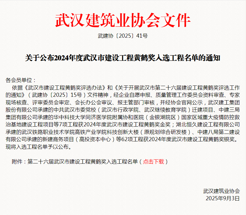 • 2025-09-10再添8項(xiàng)!湖北省建工第五建設(shè)有限公司榮譽(yù)持續(xù)刷新[]
